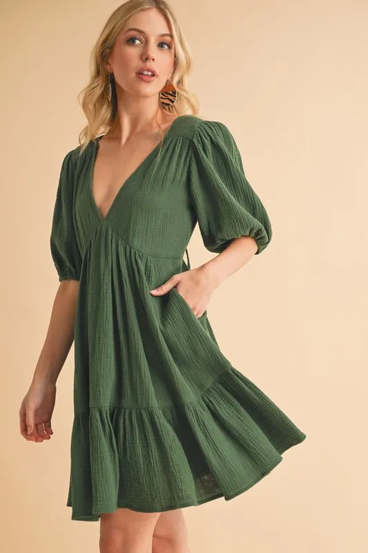Tied Back Ruffled Short Sleeve Mini Dress – Emerald