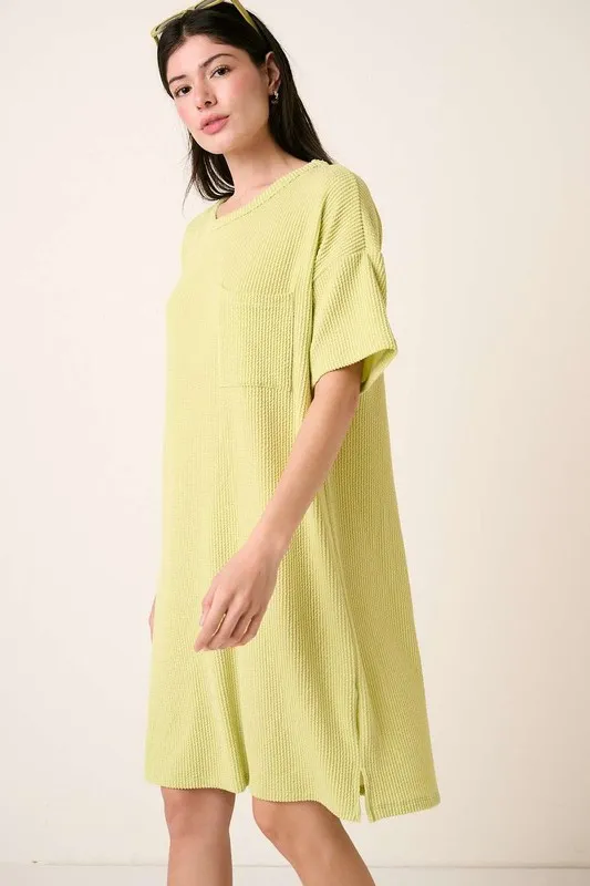 Urban Rib Knit Short Sleeve Tee Dress – Lime