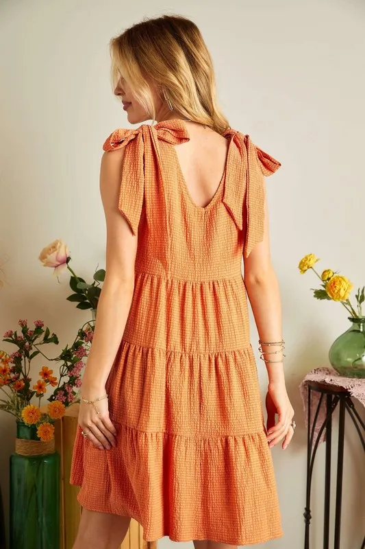V-Neck Tie Shoulder Dress – Tangerine
