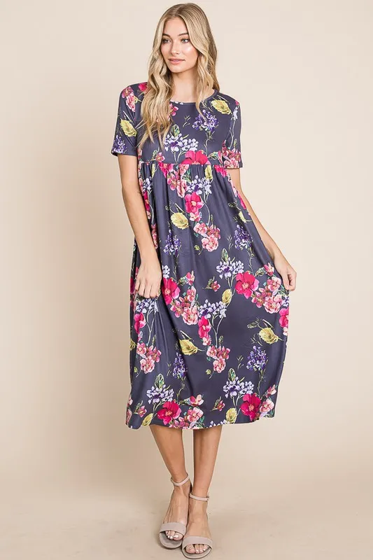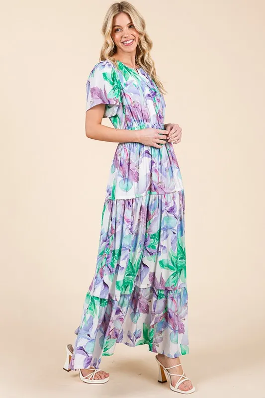 Floral Print Short Sleeve Smocked Maxi Dress – Lavender Combo